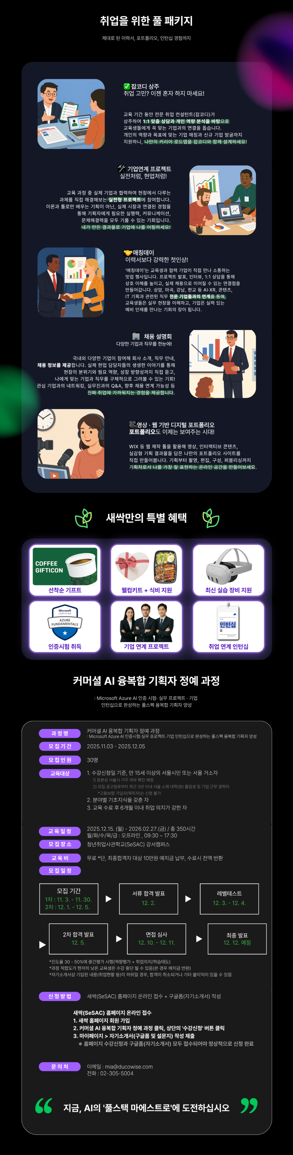 ✅ 국제 인증 AI 자격증부터 정규직 전환 인턴십, 취업 성공 포트폴리오를 완성하고 싶은 분