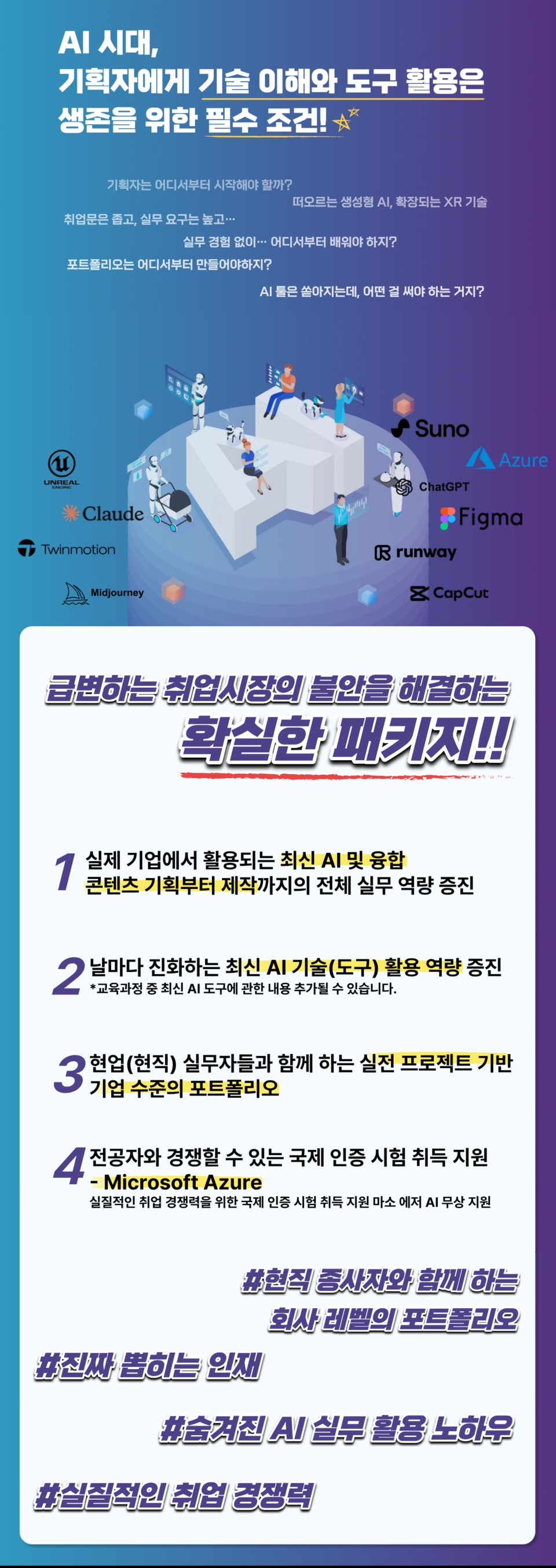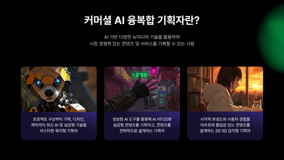 1️⃣ 실제 기업에서 활용되는 커머셜 AI 융합 콘텐츠 기획부터 제작까지 전체적인 실무 역량 습득